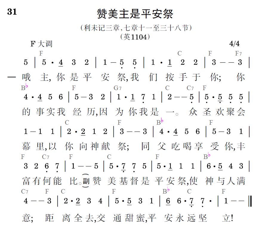 喜乐盈盈,平安处处,圣民怎不欢呼!(此副歌仅第三节用)