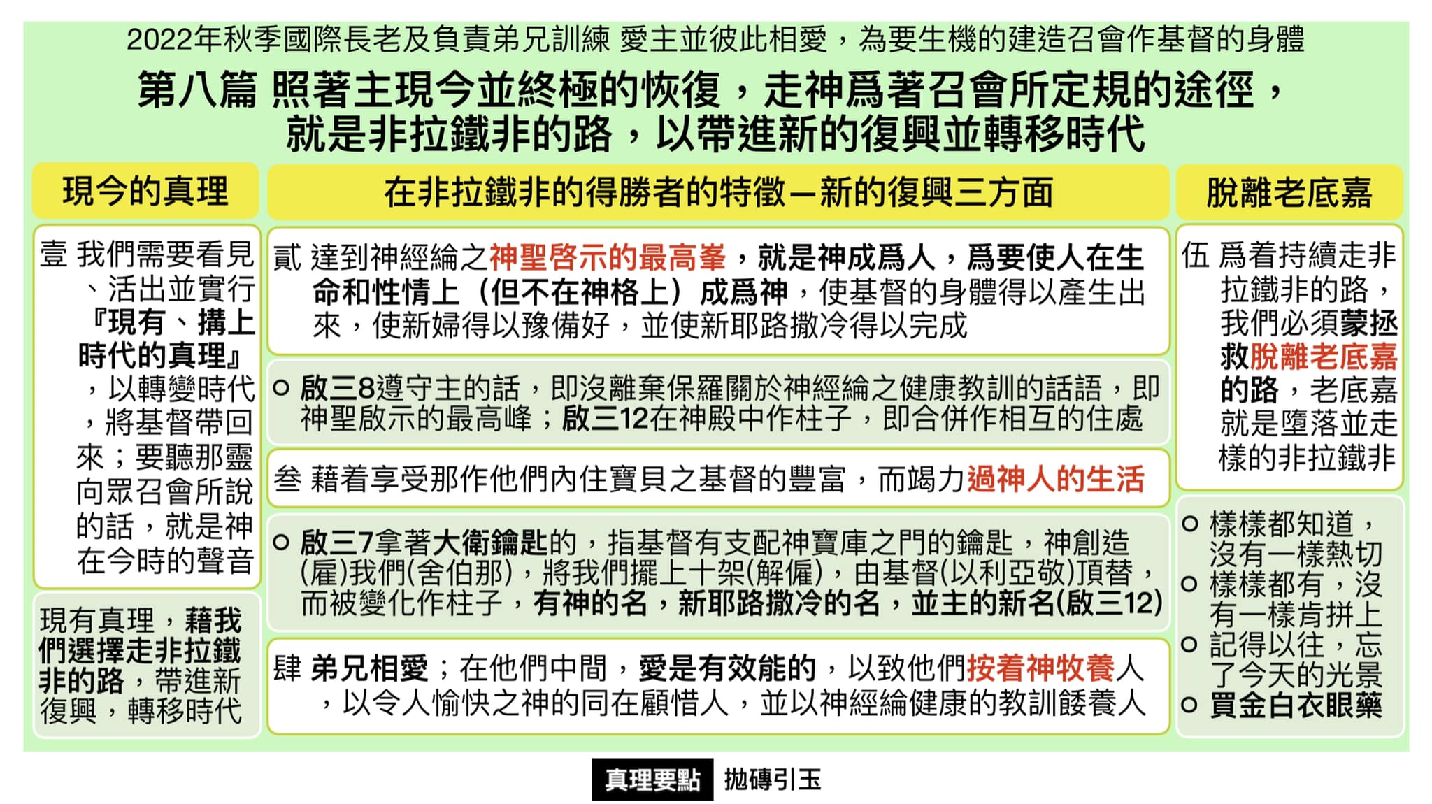 第八篇 爱主并彼此相爱—为着生机地建造召会作基督的身体,在我们所是和所作上极超越的路