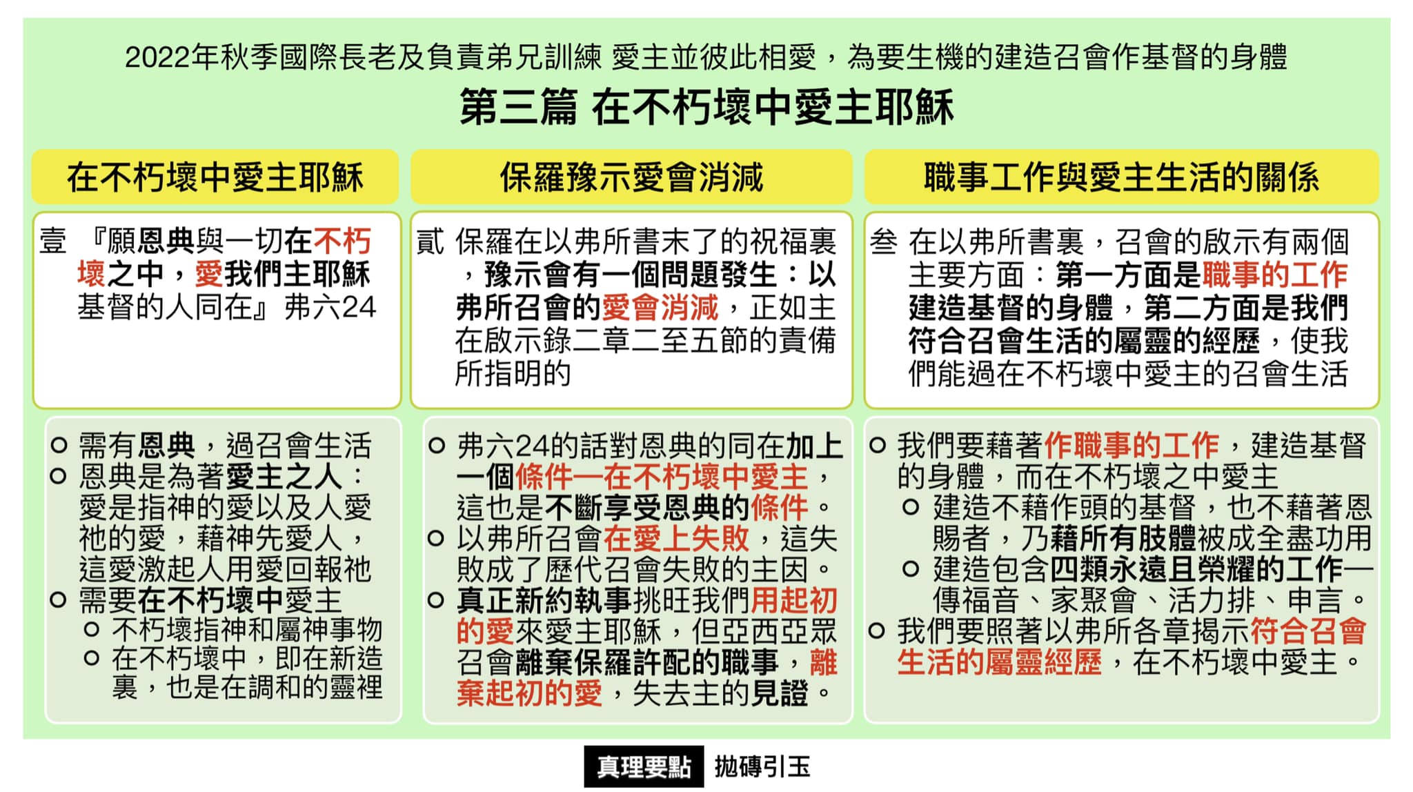 总题:爱主并彼此相爱, 为要生机地建造召会作基督的身体