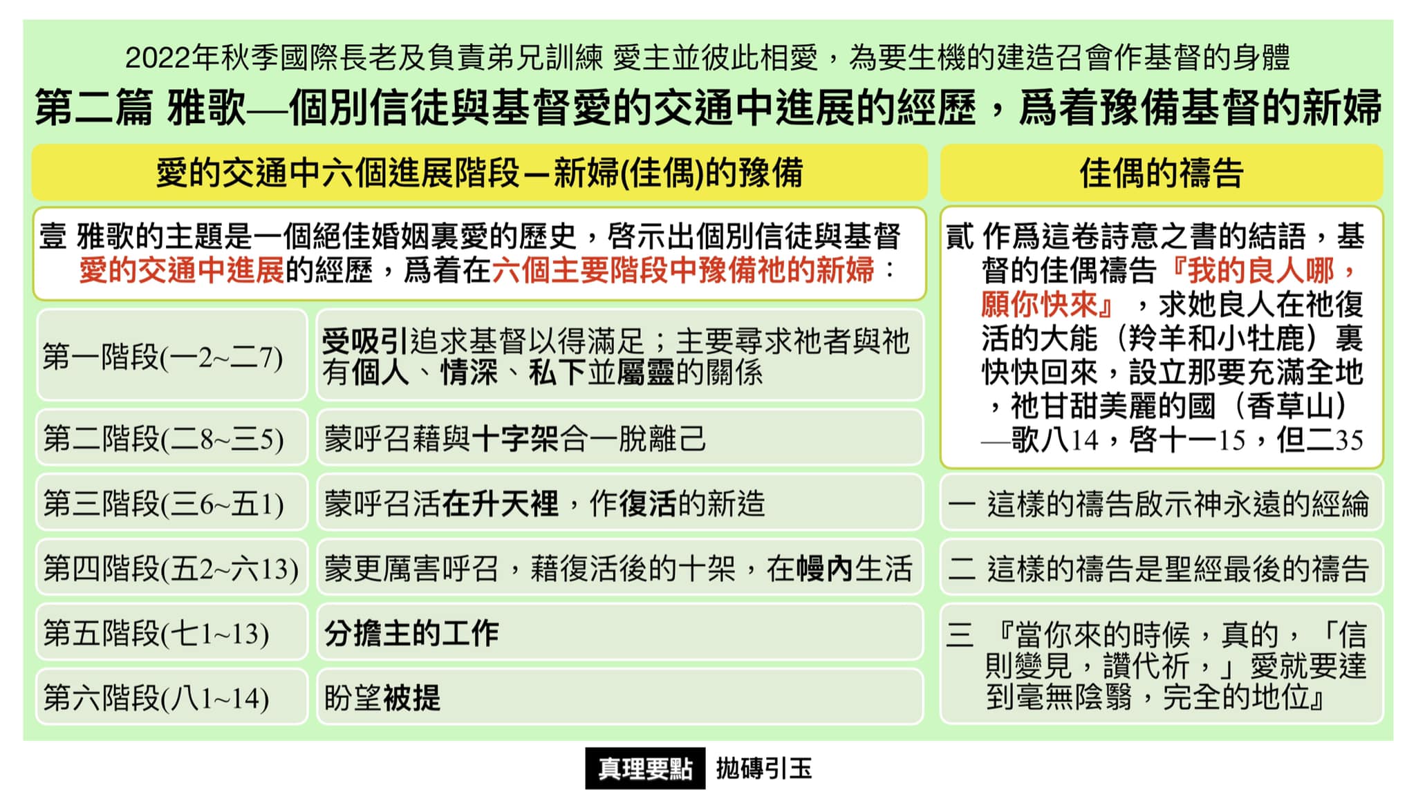 第二篇 雅歌—个别信徒与基督爱的交通中进展的经历,为着预备基督的新妇