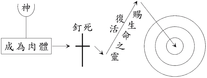 神“成了”肉体,降生为人,称为耶稣。“话成了肉体,支搭帐幕在我们中间。”(一14)主“成了”那灵,从死复活,成为赐生命的灵。“末后的亚当成了赐生命的灵。”(林前十五45下)这个灵既是“赐生命的灵”,就带着生命,把神分赐到相信祂的人里面。