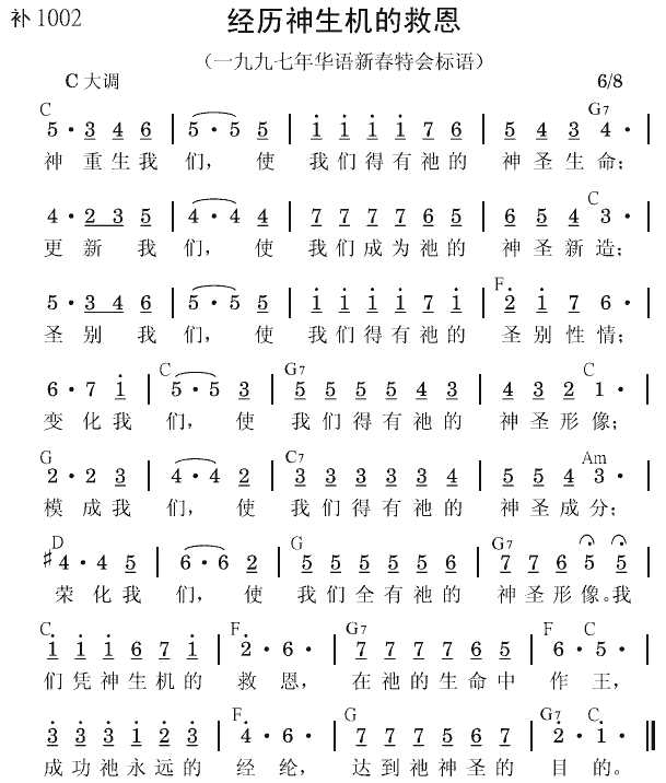 神生机的工作,从重生到得荣,乃是从神进到人里面起,直到把人实实际际的作到神里面。重生是神进到人里面,得荣是人进到神里面。这样,人就完全与神相调联结,而显出神的形像;那就是荣耀。神这完整救恩的终极完成,至终就是新耶路撒冷——那经过种种过程而终极完成的三一神,与祂经过重生、变化、模成、得荣的三部分选民,神与人相联并相调的结晶(神救恩生机的一面,七六至七七页)。