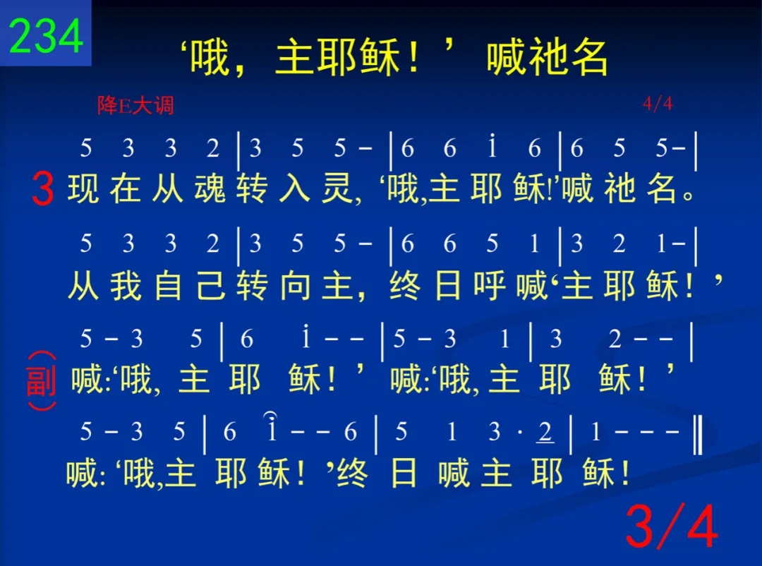 “哦,主耶稣!”喊祂名,使我终日运用灵;不断呼喊祂的名,祂就来充满我灵。