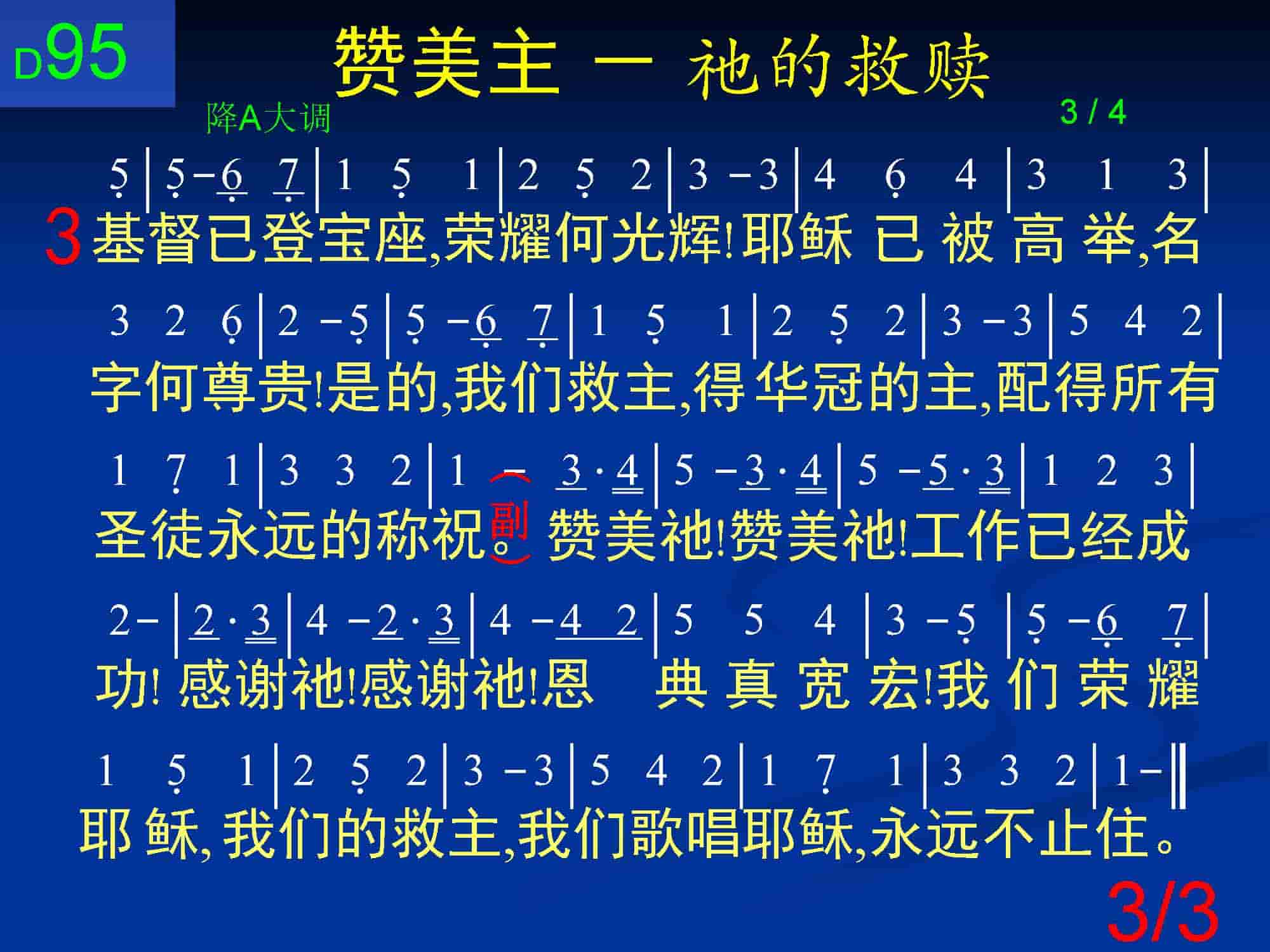 赞美祂!赞美祂!工作已经成功!感谢祂!感谢祂!恩典真宽宏!我们荣耀耶稣,我们的救主,我们歌唱耶稣,永远不止住。